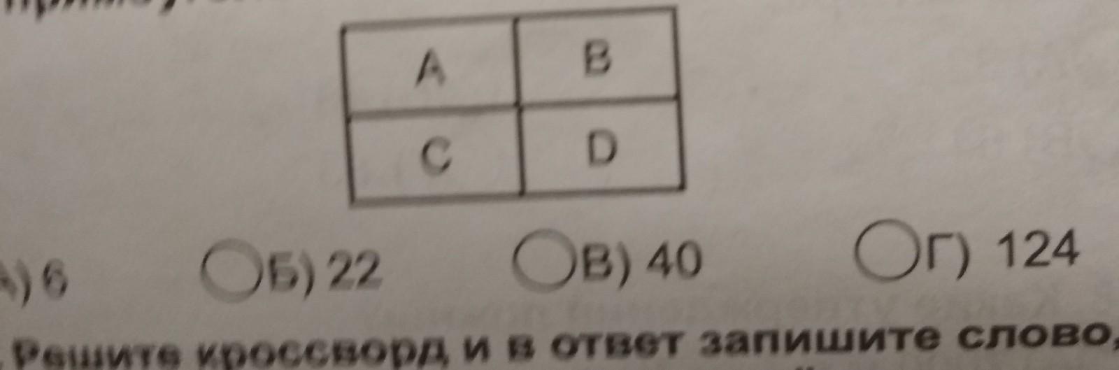 исходный прямоугольник разделили на 4 прямоугольника так как показано на рисунке найдите, на сколько периметр большого прямоугольника меньше суммы периметра маленьких прямоугольников, если A равен 34, периметр прямоугольника D равен 28. И известно, что прямоугольник A равен прямоугольнику C, прямоугольник B равен прямоугольнику D.