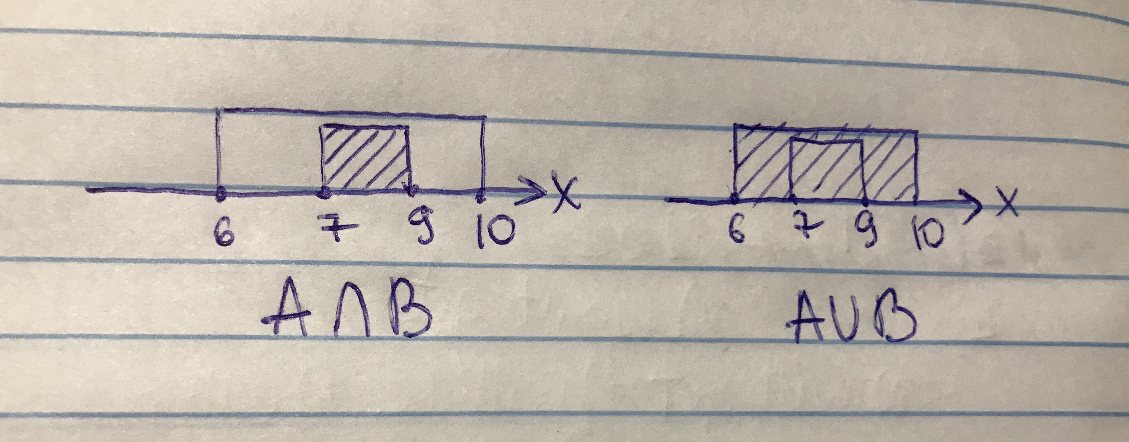 Отметить точки границ промежутков на оси. Показать промежутки. Найти общие для первого вопроса(АhB) и все возможные промежутки для второго вопроса.