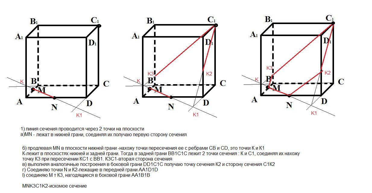 Построить сечение,проходящее через точки,выделенные на рисунке.Дам 50баллов.Подробно четко и ясно решите рисунком.Начертите обязательно