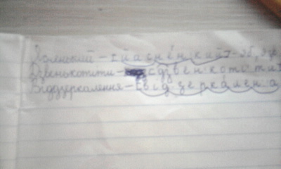 ясненький-( й а с н е н" к и й)-9 б, 9 зв; Дзвененькотіти-( дз в е н " к о т і" т и)-12 б,11 зв; Віддзеркалення-( в і д : з е р к а л е н: " а)- 14б , 12зв;