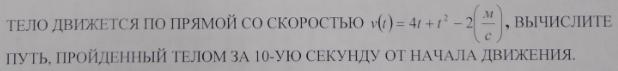 интегрируем скорость, ведь производная от пути это скорость, а интегрирование от скорости это соответсвенно путь, ну а дальше просто вместо времени ставим 10 и получаем ответ, только здесь число не получается целым...
