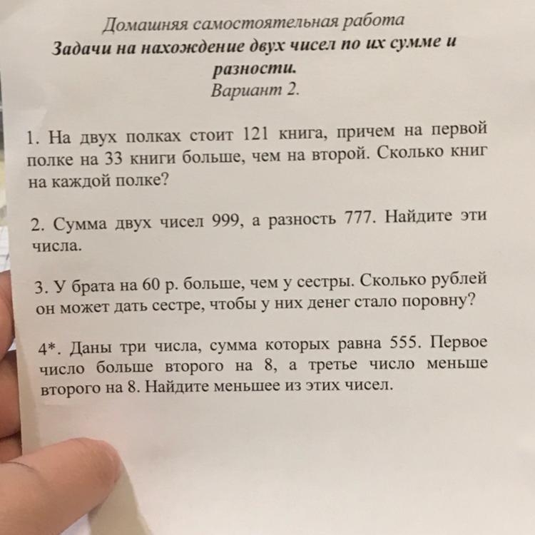 4*. Даны три числа, сумма которых равна 555. Первое