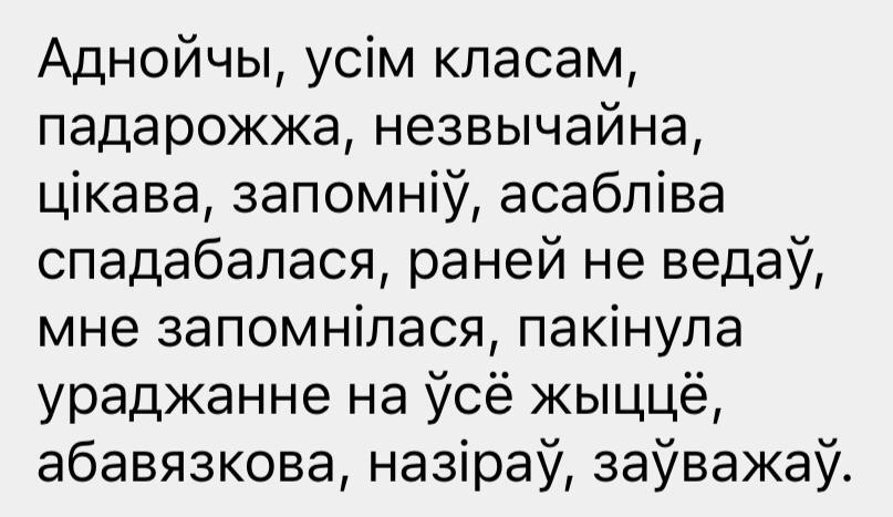 Ответ:Однажды, всем классом, путешествие, необычно, интересно, запомнил, особенно понравилось, раньше не знал, мне запомнилось, оставило впечатлениями на всю жизнь, обязательно, наблюдал, замечал.