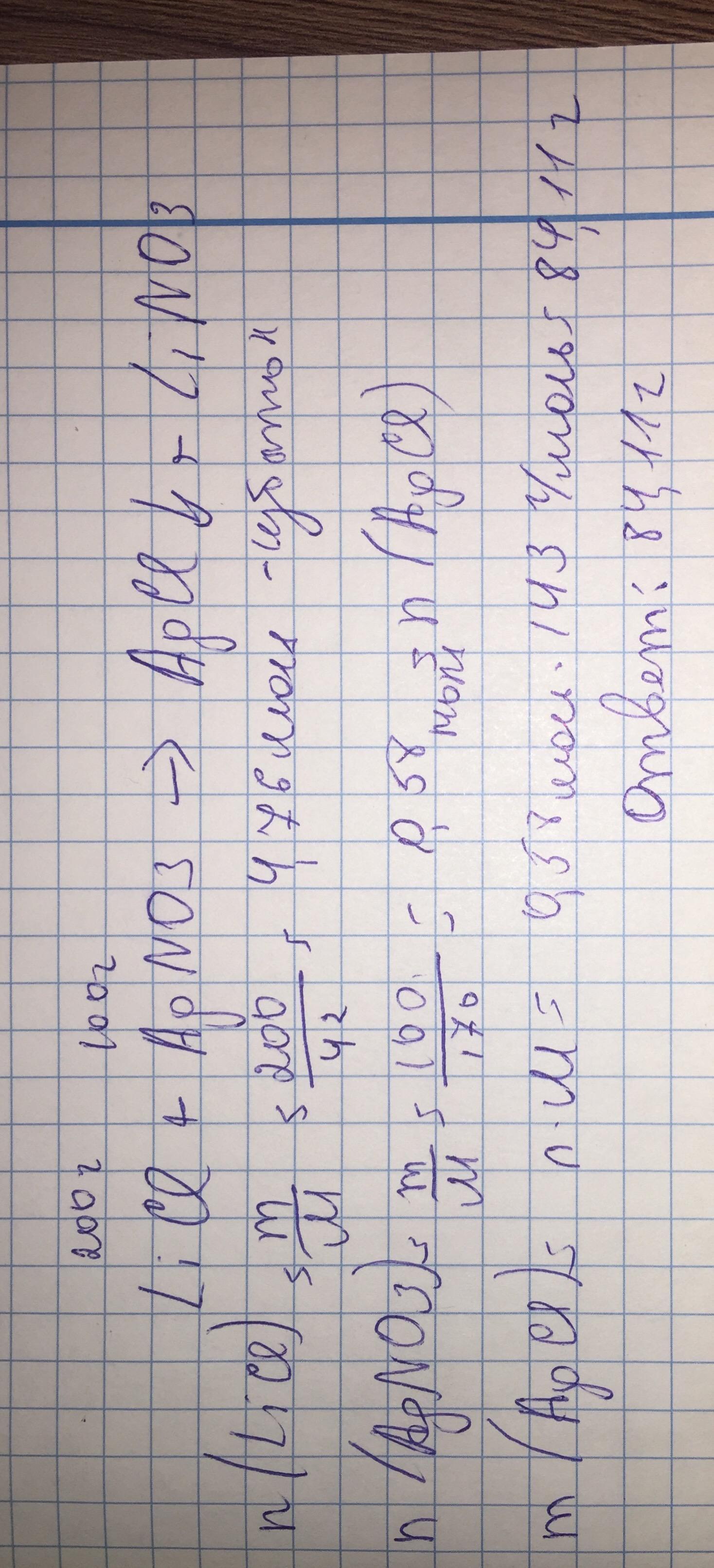 Найдите массу осадка, который образовался при взаимодействии 200 г хлорида лития и 100г нитрата серебра