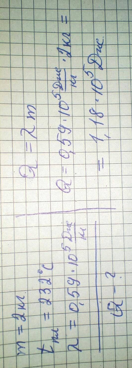 Определи, какое количество теплоты необходимо для плавления 2 кг олова при температуре плавления, равной 232 °С. Удельная теплота плавления олова равна 0,59⋅105Джкг.