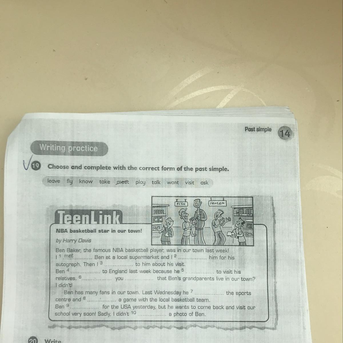 2. asked; 3. talked; 4. flew; 5. wanted; 6. did you know; 7. visited; 8. played; 9. left; 10.take