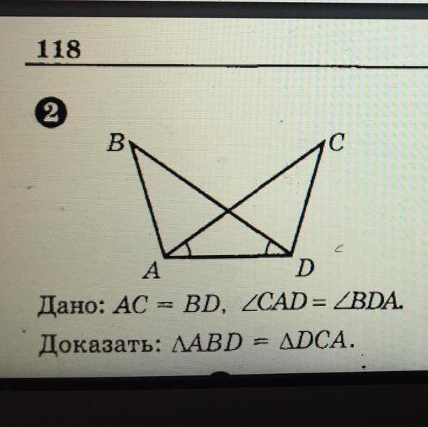 По условию AC=BD, угол CAD=углу BDA,следовательно, треугольник ABD=треугольнику DCA по гимпотенузе и острому углу