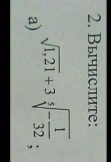 \sqrt{1,21}+3\sqrt[5]{-\frac{1}{32}}=\sqrt{1,1^{2}} +3*\sqrt[5]{(-\frac{1}{2})^{5}}=1,1+3*(-\frac{1}{2})=1,1-1,5=-0,4\\\\Otvet:\boxed{-0,4}