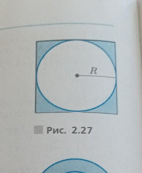Так как диаметр вписанной в квадрат окружности равен его стороне, то можно записать сторону а как 2R (диаметр). Тогда: