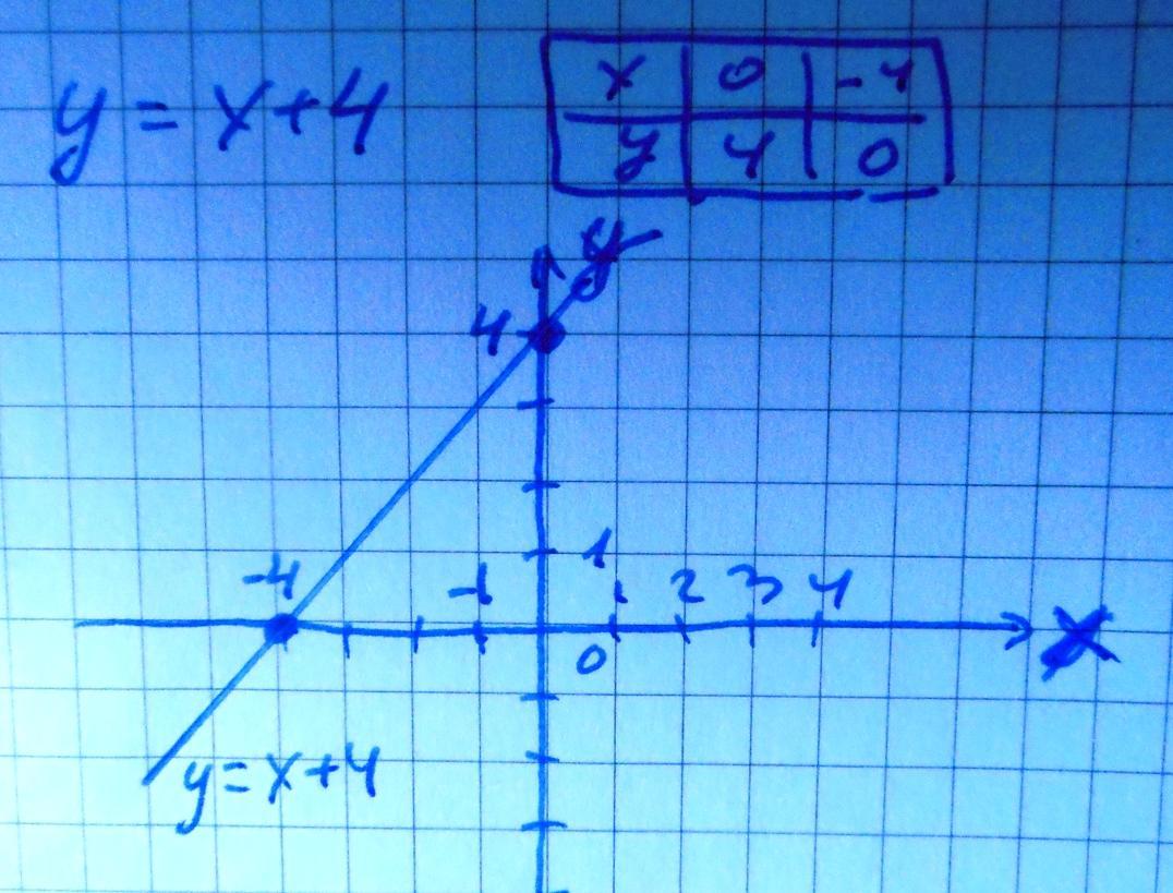 График -прямая линия через 2 точки: х=0 у=4, и х=3 у=7