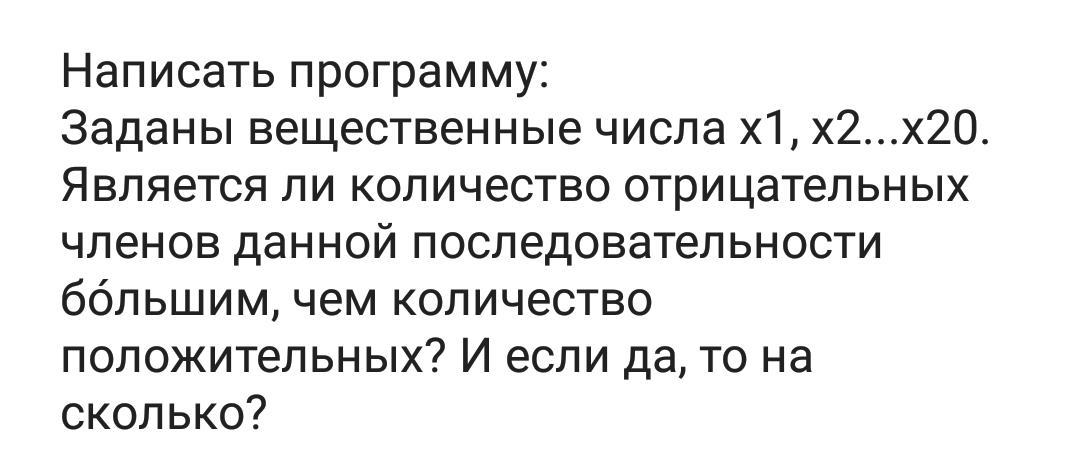 Спасибо огромное:) Подскажите, пожалуйста, какой функцией или каким методом реализовать в программе выведение количества чисел, на сколько больше или меньше к-во отрицательных?