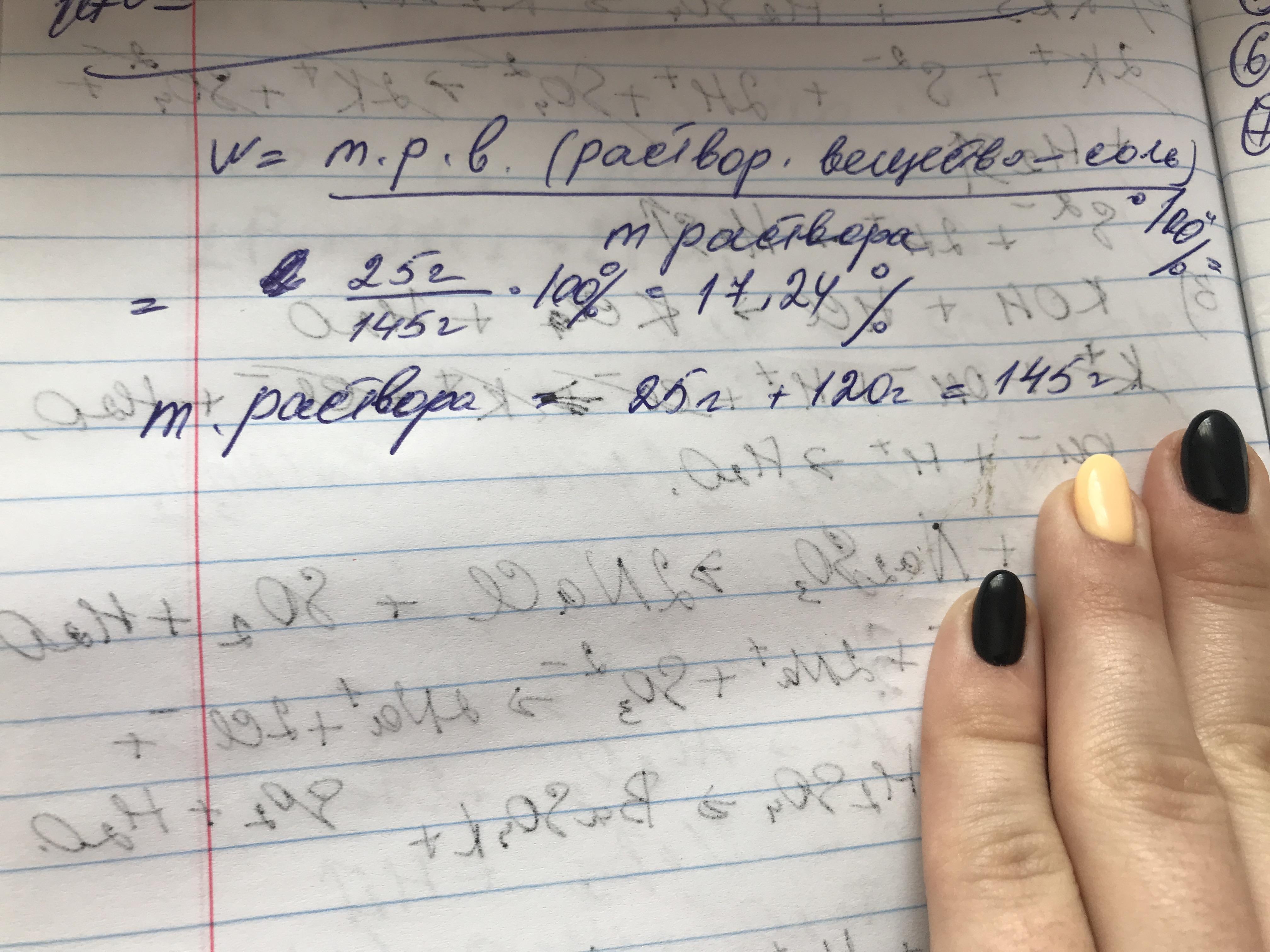 Рассчитать массовую долю нитрата калия в растворе, полученном смешением 25 г этой соли и 120 г воды. Рассчитайте массовую долю соли в полученном растворе в %. Ответ округлить до десятых.