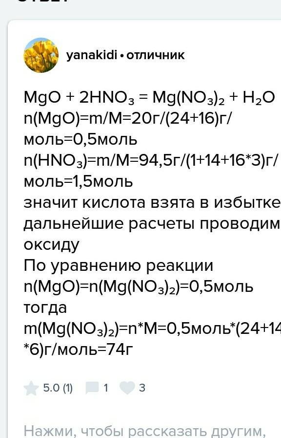 сформулируйте условие задачи которое схемаатично записано следующим образом MgO(m=20г)+H2SO4=MgSO4(v-?)+H2O решите её и дайте полный ответ