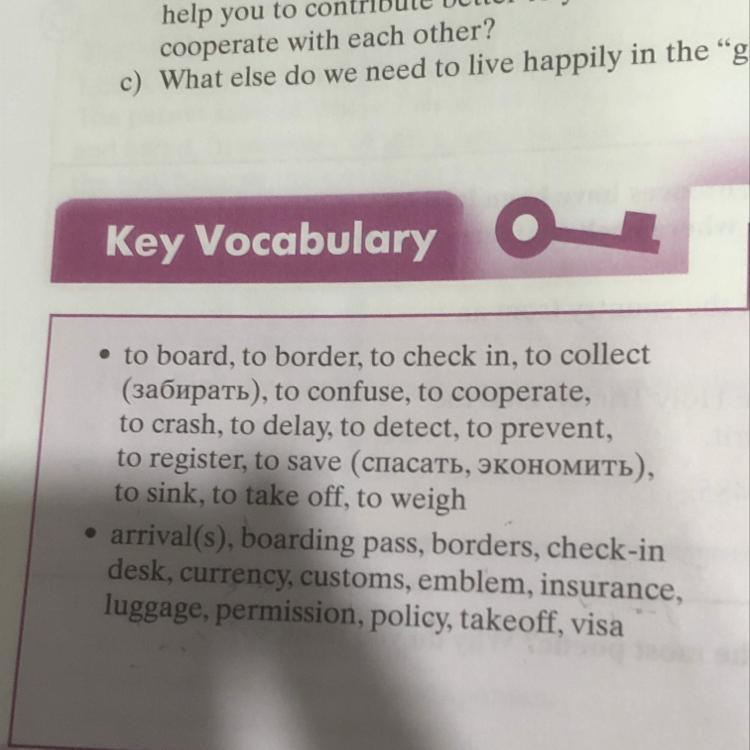 садиться, граничить, регистрироваться, собирать (забирать), сбивать с толку, сотрудничать, терпеть крушение, задерживать, обнаруживать, предотвращать, регистрировать, спасать (спасать, экономить), тонуть, брать вылет, взвешивание прибытия (ий), посадочный талон, границы, стойка регистрации, валюта, таможня, эмблема, страхование, багаж, разрешение, политика, взлет, виза