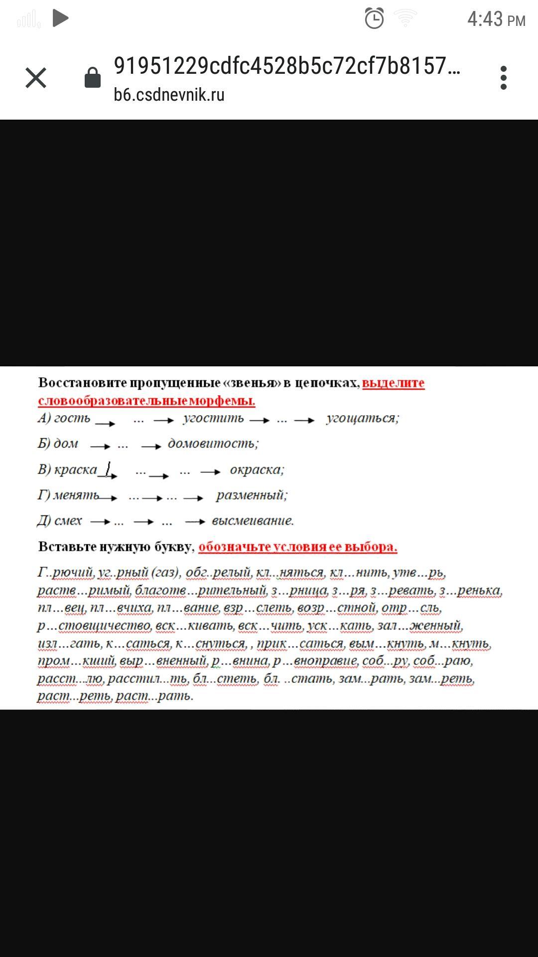 Восстановите пропущенные "звенья" в цепочках, выделите словообразовательные морфемы.