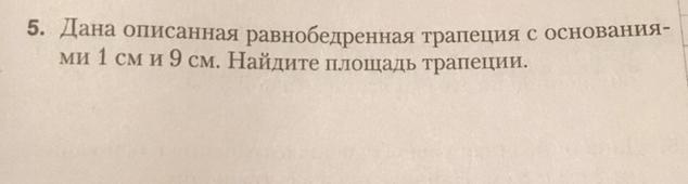 зная правило "окружность можно вписать в четырех угольник есль суммы противоложных сторон равны" следовательно сумма оснований равна сумме боковых сторон