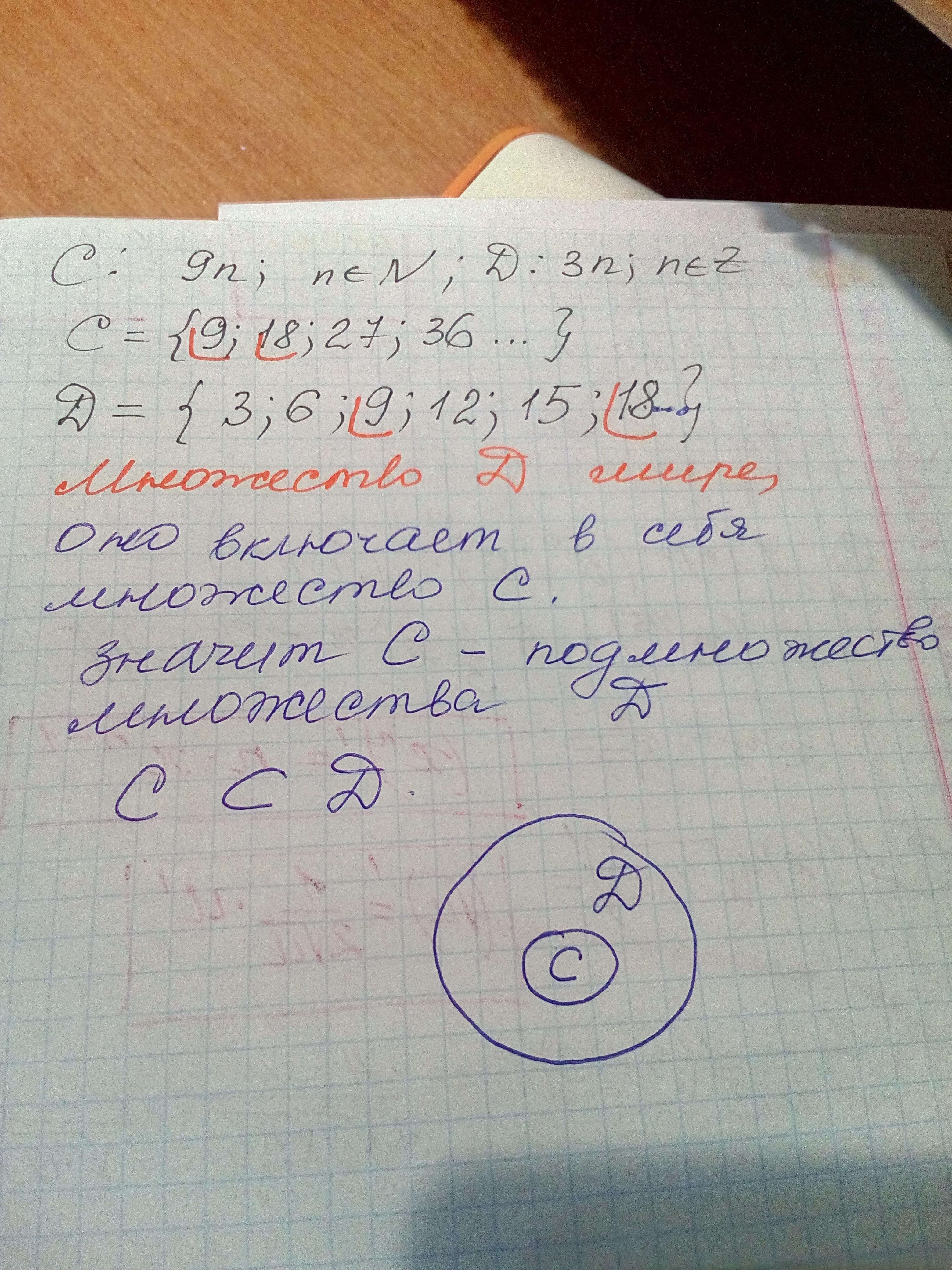 Пусть C – множество натуральных чисел, кратных 9. D – множество натуральных чисел кратных 3. Какое соотношение связывает множества C и D.