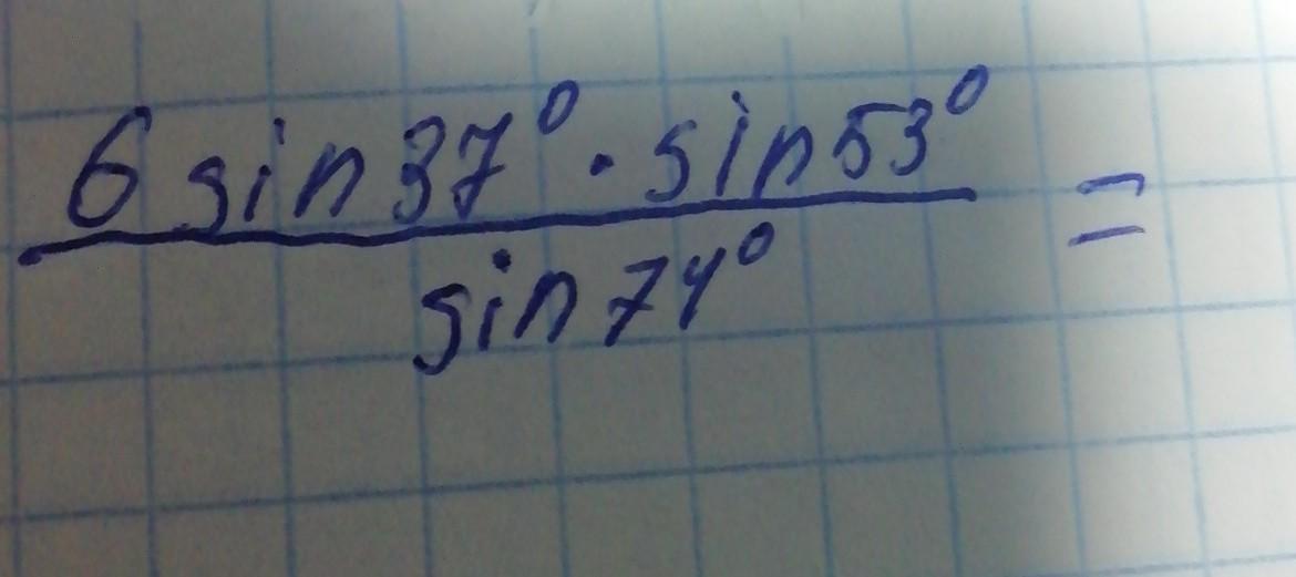 6sin37°sin53°/sin74°=6sin37°sin(90°-37°/sin74°=3*2sin37°cos37°/sin74°=3sin74°/sin74°=3