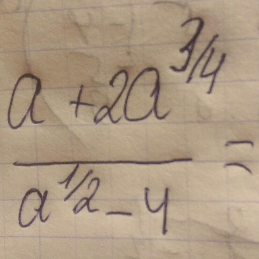\frac{a+2a^{\frac{3}{4} }}{a^{\frac{1}{2} }-4}=\frac{a^{\frac{3}{4}}(a^{\frac{1}{4}}+2)}{(a^{\frac{1}{4}}+2)(a^{\frac{1}{4}}-2)}=\frac{a^{\frac{3}{4}}}{a^{\frac{1}{4}}-2}