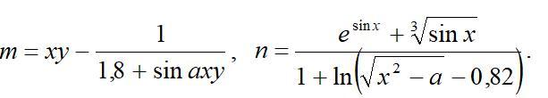 n = ((exp(sin(x))+pow(sin(x),1/3)/(1+log(sqrt(pow(x,2)-a)-0.82))));