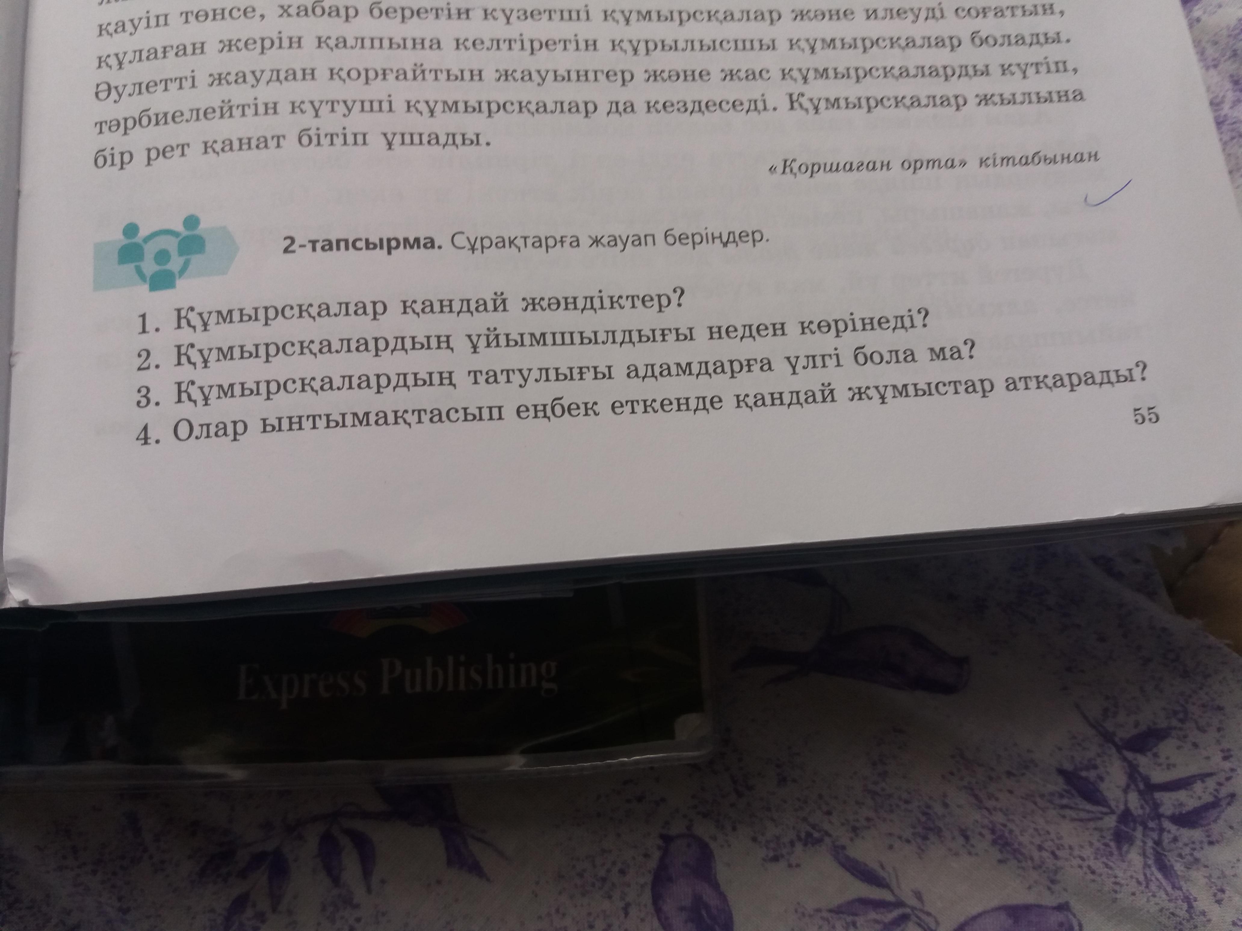 4)оларға қауіп төнсе, күзетши құмырсқалар бар, құлаған жерін қалпына келтіретiн құрылысшы құмырсқалар болады және т.б.