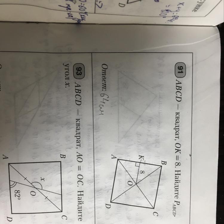 КО перпендикулярна стороне АВ, поэтому и стороне DС, т.к. АВ параллельна DС, но тогда сторона квадрата 8*2=16, а его периметр равен 4*16=64