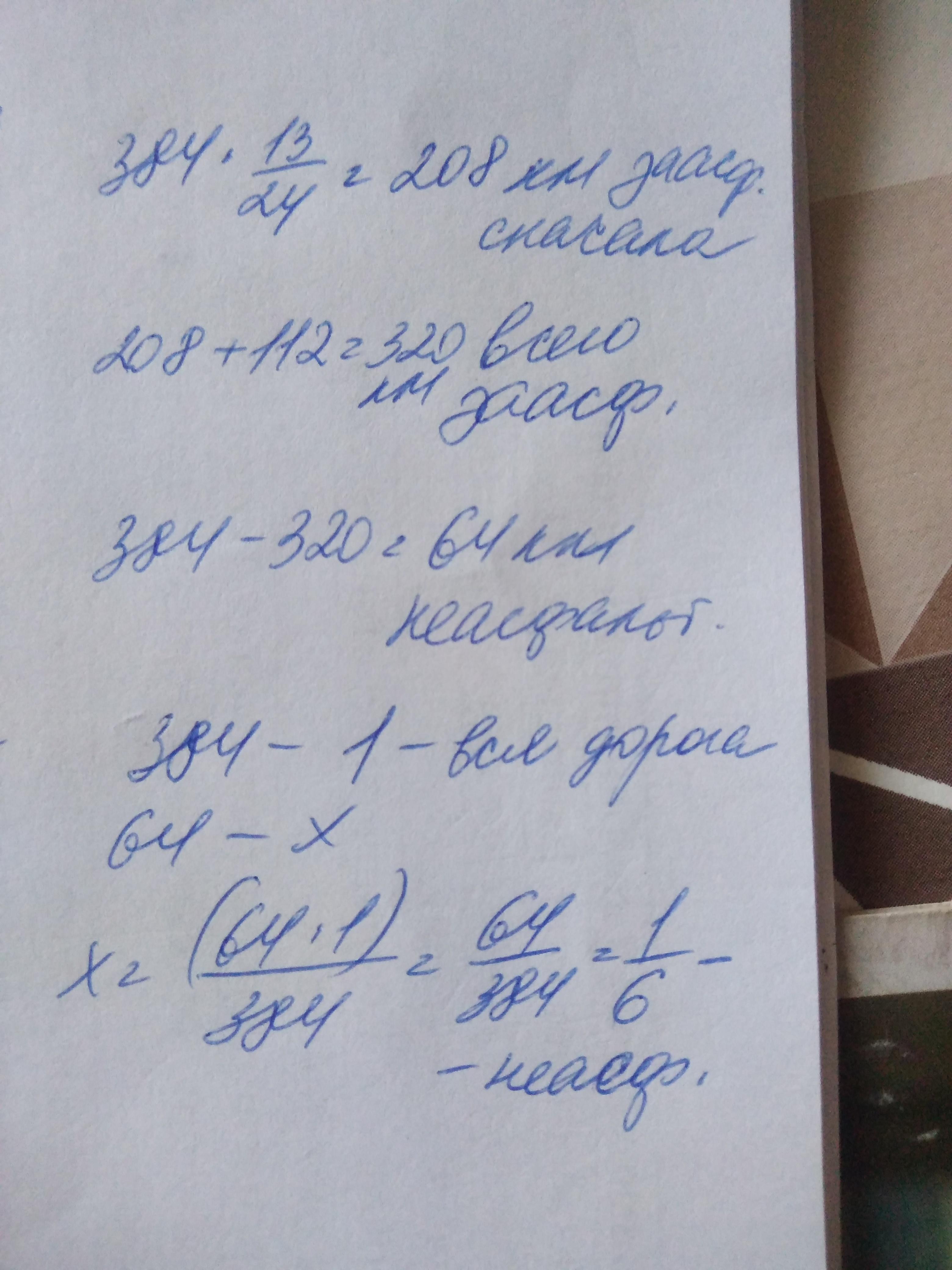 1) 384 : 24 х 12 = 192 км заасфальтировали сначала