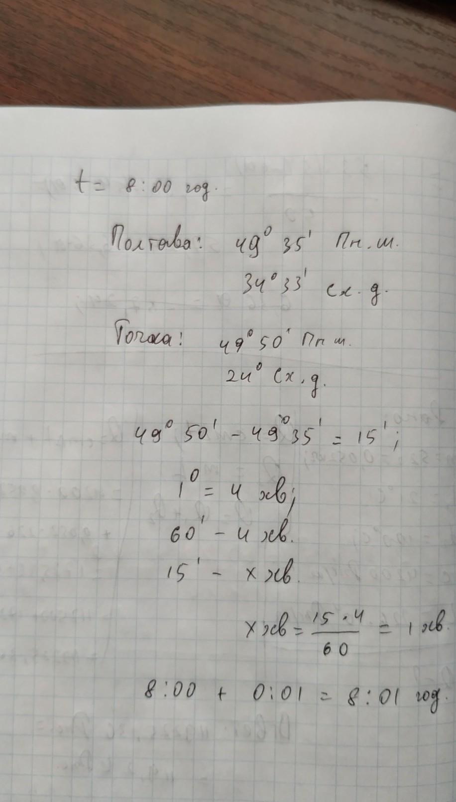 У.м Полтава 8-ма година . Котра година за місцевим часом у точці, розташованій на 49° 50 пн. ш. 24°сх.д.
