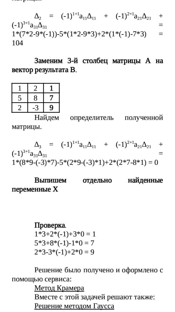 Пожалуйста помогите решить систему методом Крамера. Решение распишите подробнее. Очень хочется разобраться на этом примере.