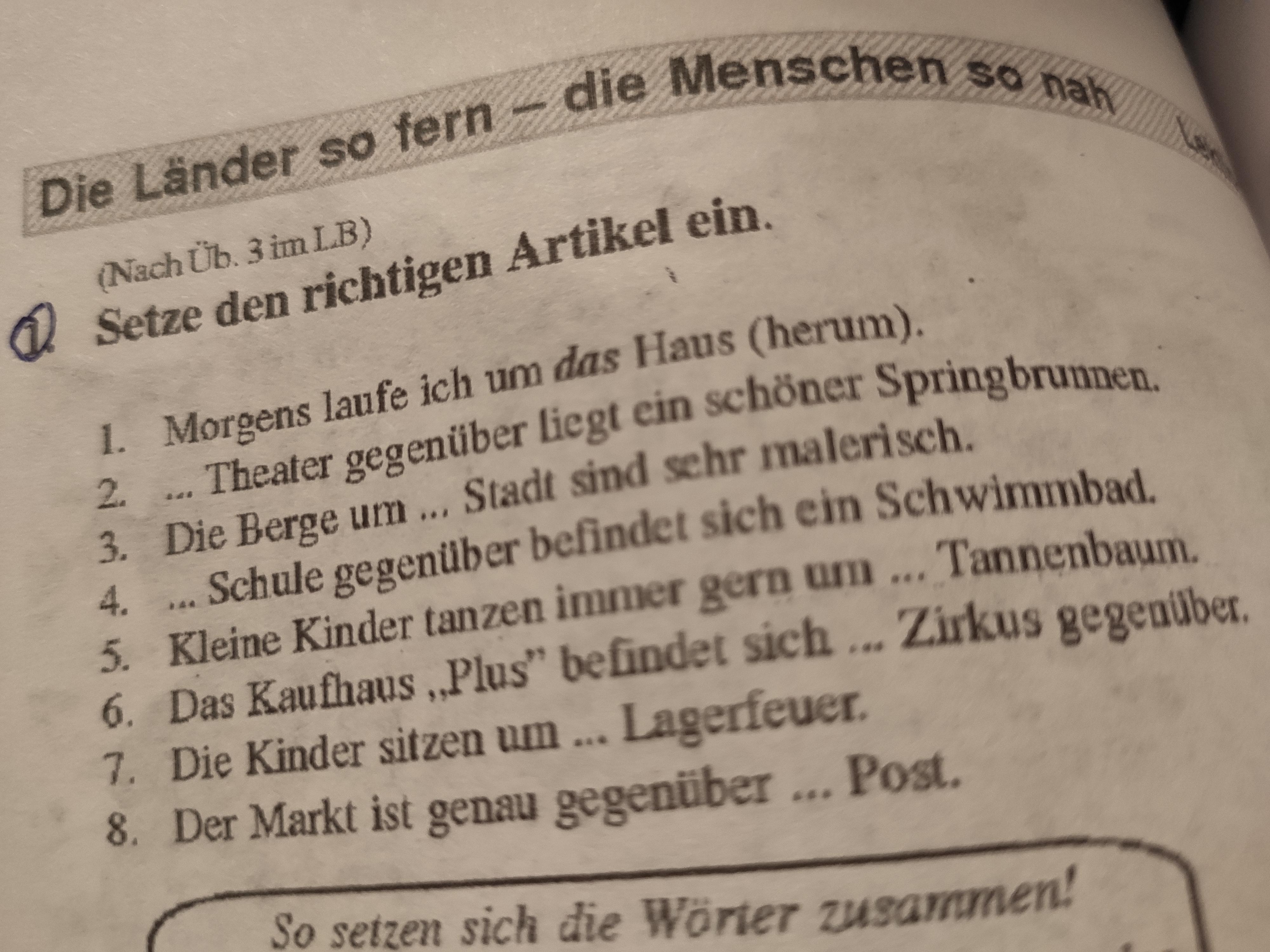 2. Dem (gegenüber⇒Dativ,das⇒dem)