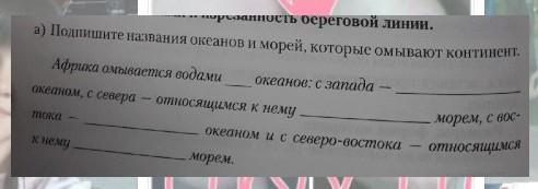 Африка омывается водами 3 океанов:с запада-Атлантическим океанов,с севера-относящимся к нему Средиземным морем, с северо-востока-относящимся к нему Красным морем.
