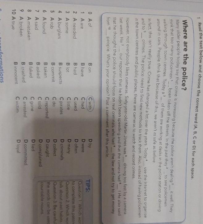 1B have 2C used B lot 4D criminals 5B commit 6D caught 7C told 8D lied 9A broken 10B innocent