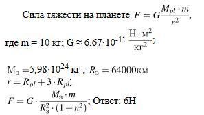 Тело имеет массу 10кг. какая сила тяжести действует на это тело на высоте трех земных радиусов от поверхности Земли?