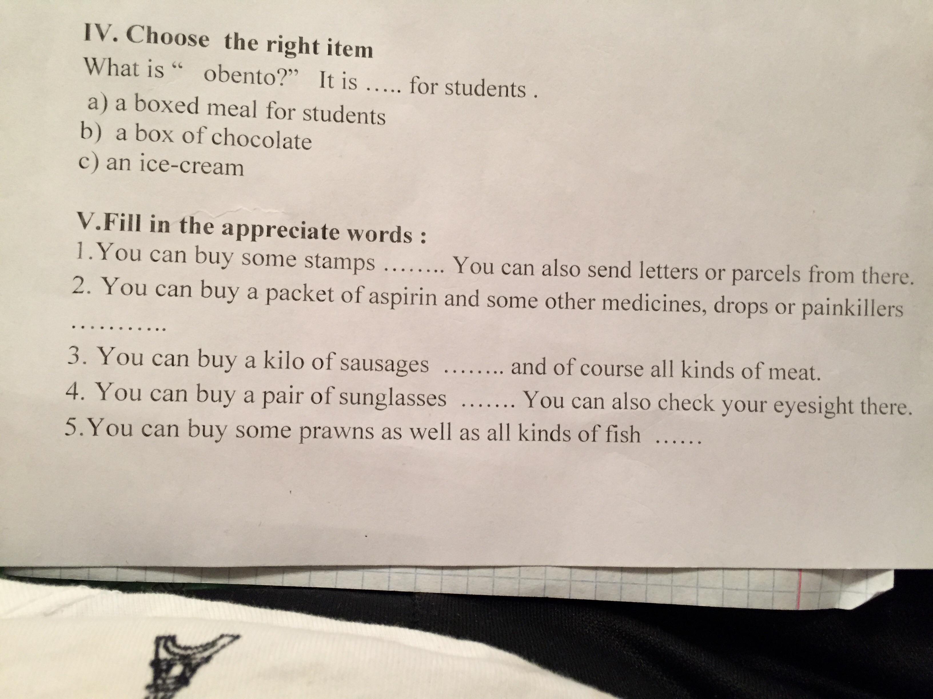 2) at the pharmacy/ at the chemist's /at the drug-store