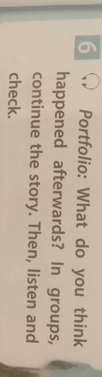 перевод: "как ты думаешь, что произошло потом? продолжите историю в группах. потом послушайте и проверьте"