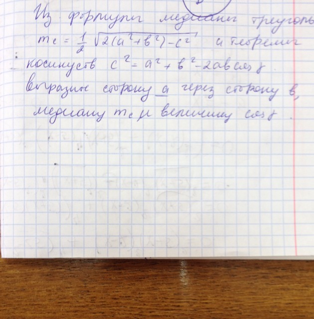 4m² = 2a² + 2b² - c², отсюда с² = 2а² + 2b² - 4m². Мы также знаем, что с² = а² + b² - 2abcosy. Значит,
