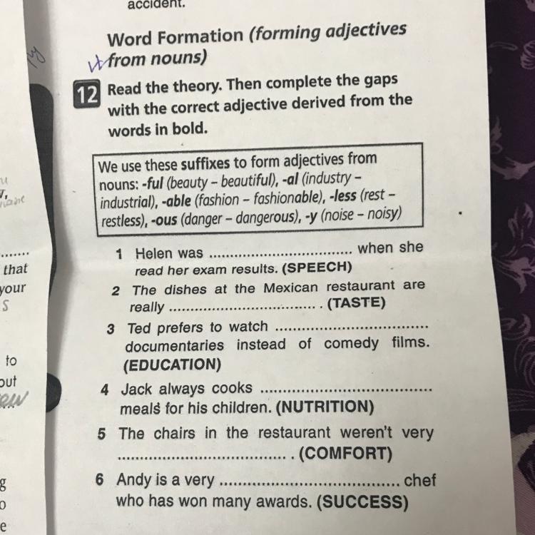 read the theory.Then complete the gaps with the correct adjective derived from the words in bold