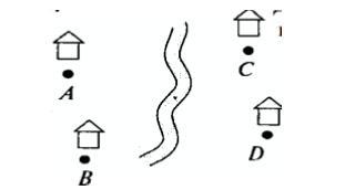 Деревни А, В, С, D, расположены в вершинах прямоугольника. В каком месте следует построить мост через реку, чтобы он был одинаково удален от всех деревень?