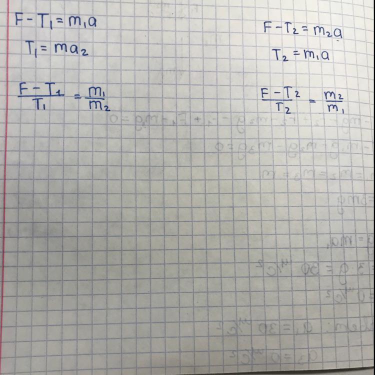 T₂=F/ (m₂/m₁+1)=F*m₁ / (m₂+m₁).