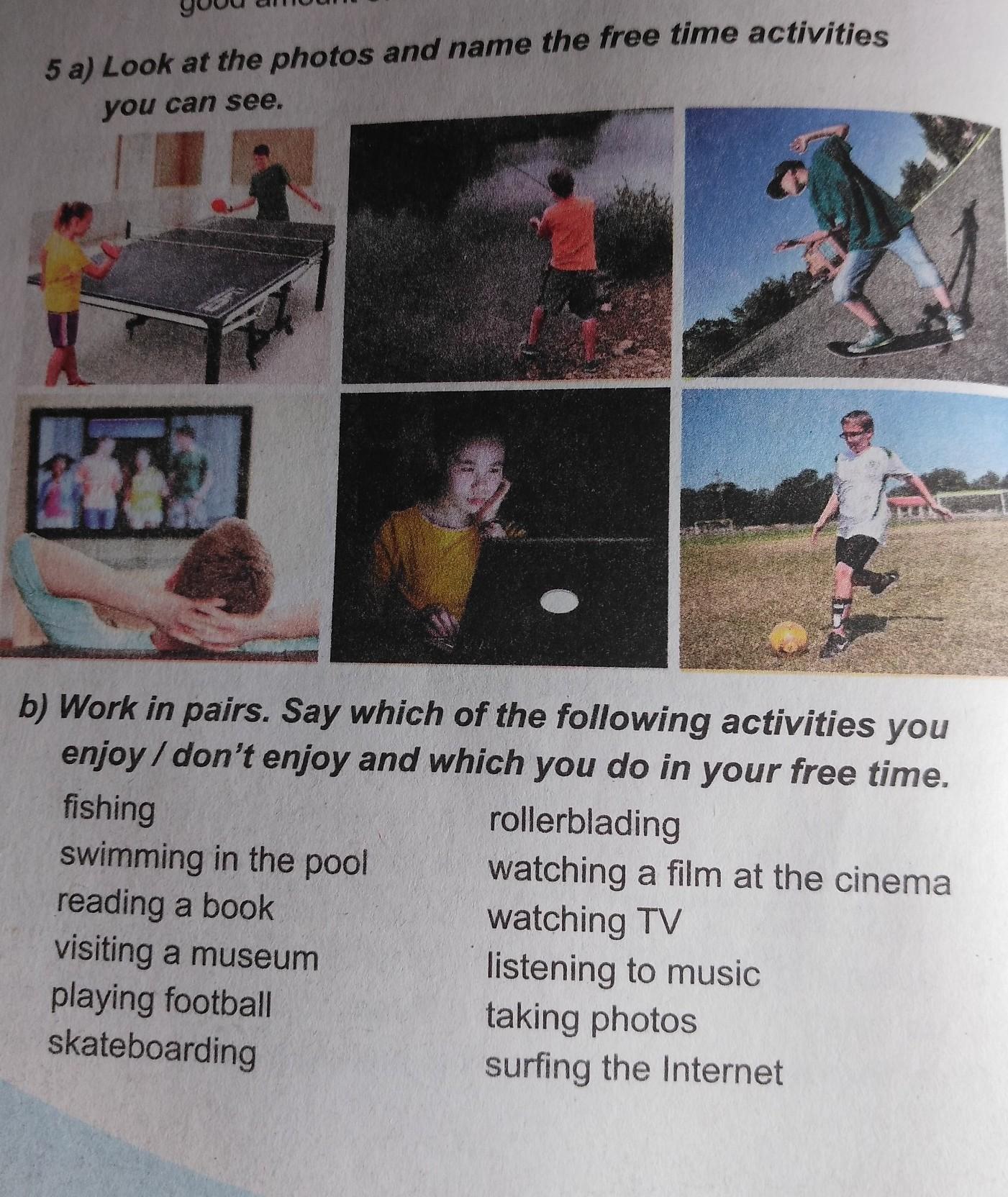 In my free time I enjoy swimming in the pool, reading a book, watching TV or a film at the cinema, visiting a museum. But most of all I like surfing the Internet and listening to music. I don't really enjoy playing football, skaterboarding, rollerblading and all that jazz. I just don't do well with sports except swimming, as I said. I am not interested in taking photos either – it's so boring, isn't it?