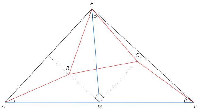 ∠AED=90, EM - медиана из прямого угла, EM=AM=DM