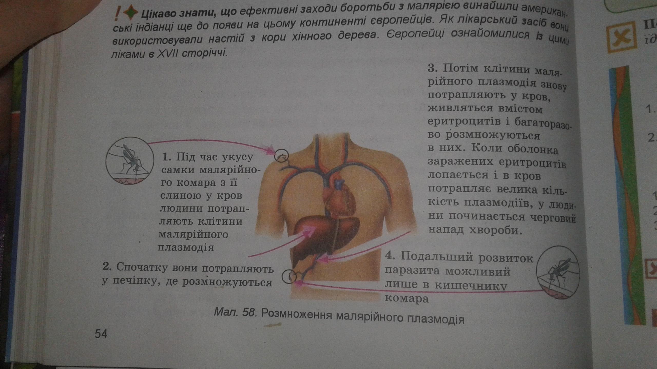 Нині малярія поширена в країнах Африки, Латинської Америки, тропічної Азії. На території Європи та Північної Америки малярію практично переможено. Хоча поодинокі випадки захворювання на малярію трапляються навіть в Україні. Звідки вона береться на нашій території? Виявляється, що переносить збудника захворювання малярійний комар (мал. 57), який мешкає і в Україні.