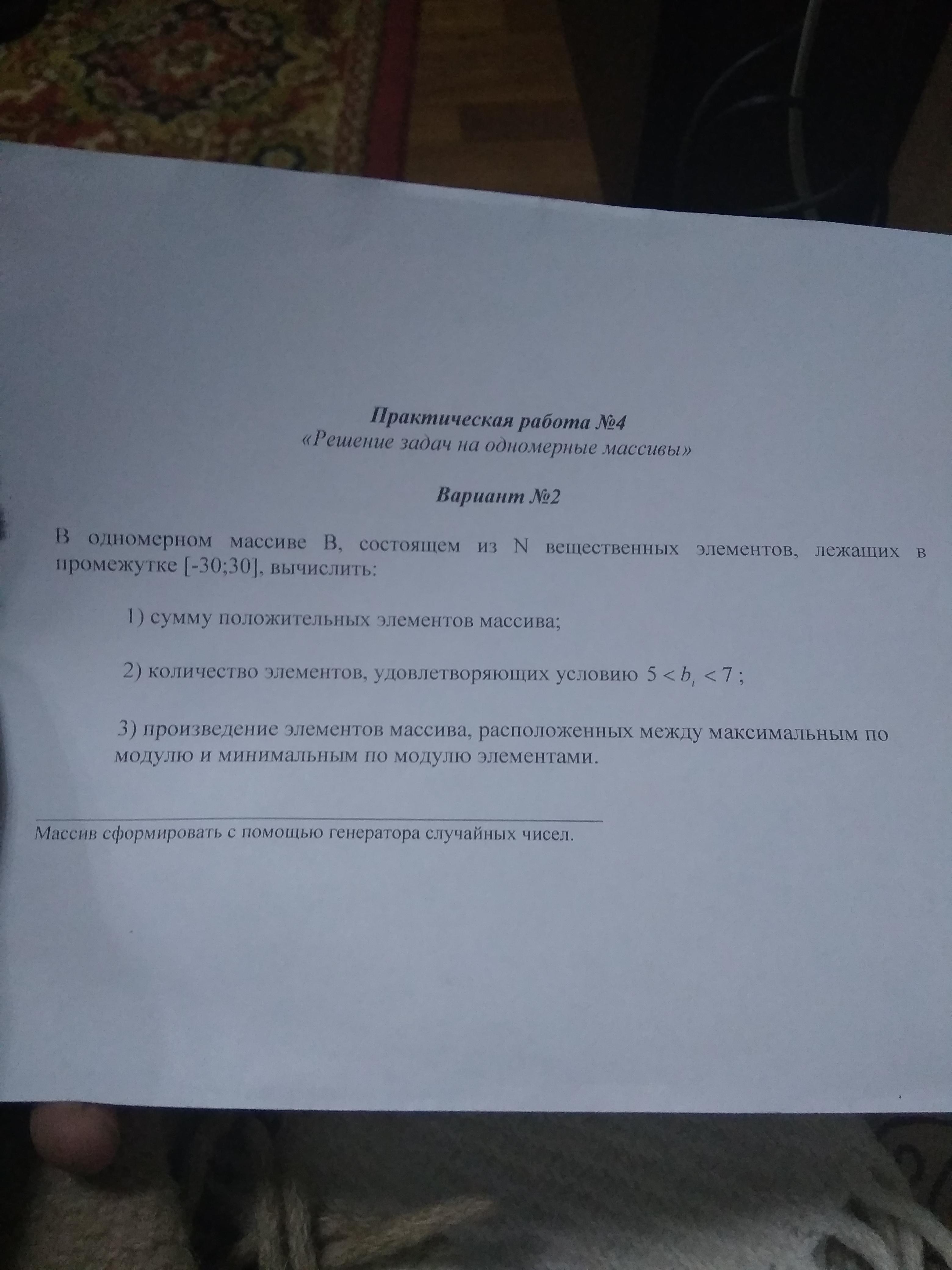 var B:=ArrRandomReal(ReadInteger('Введите N'),-30,30);