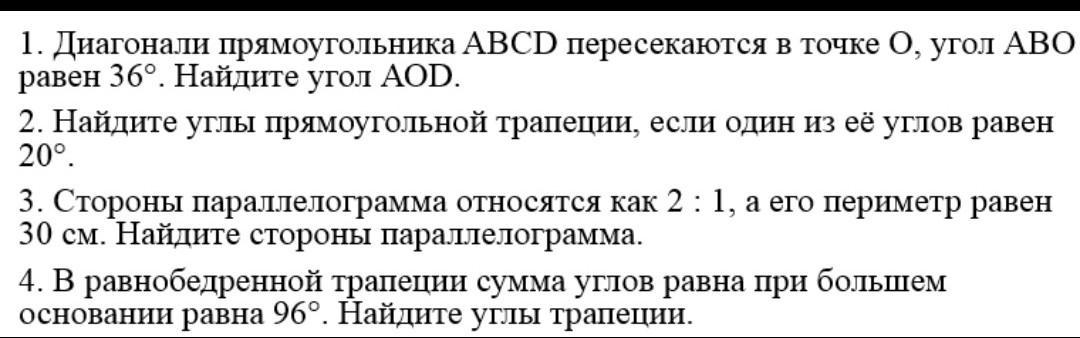 2. В прямоугольной трапеции ABCD всегда 2 угла равны 90 граусам т.е угол А и В равен 90 градусам, угол D равен 20.
