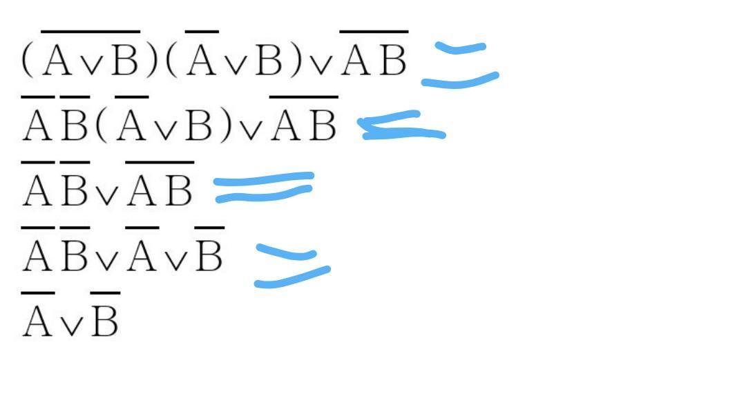 (AvB с верхним подчёркиванием)&(А с верхним подчёркиванием v B)vA&B вместе с верхним подчёркиванием.