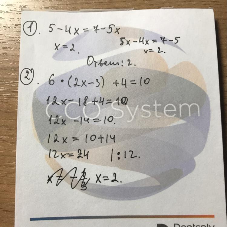 1) -4x + 5x= 7- 5