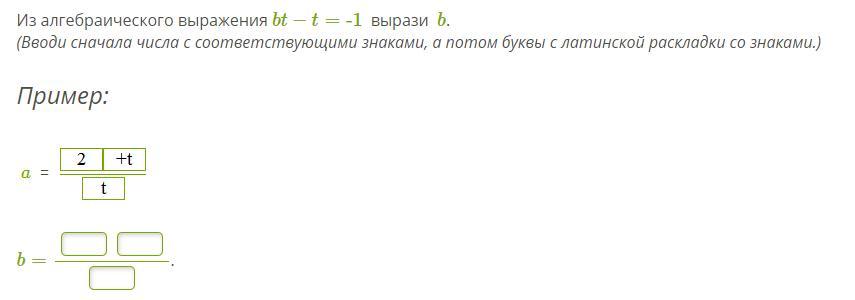 Из алгебраического выражения bt−t=-1 вырази b .