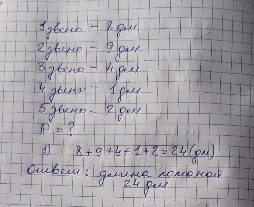 решение периметр замкнутой ломаной состоящей из пяти звеньев длины которых 8 дм, 9дм, 4 дм, 1 дм, 2 дм