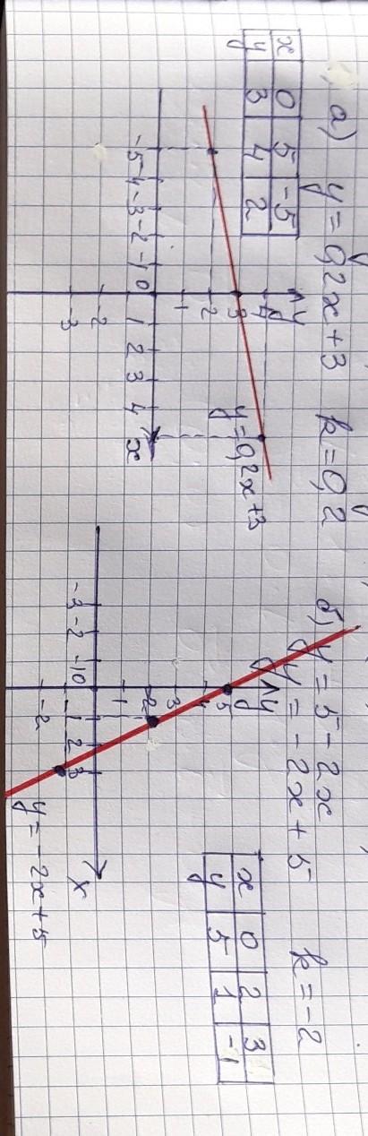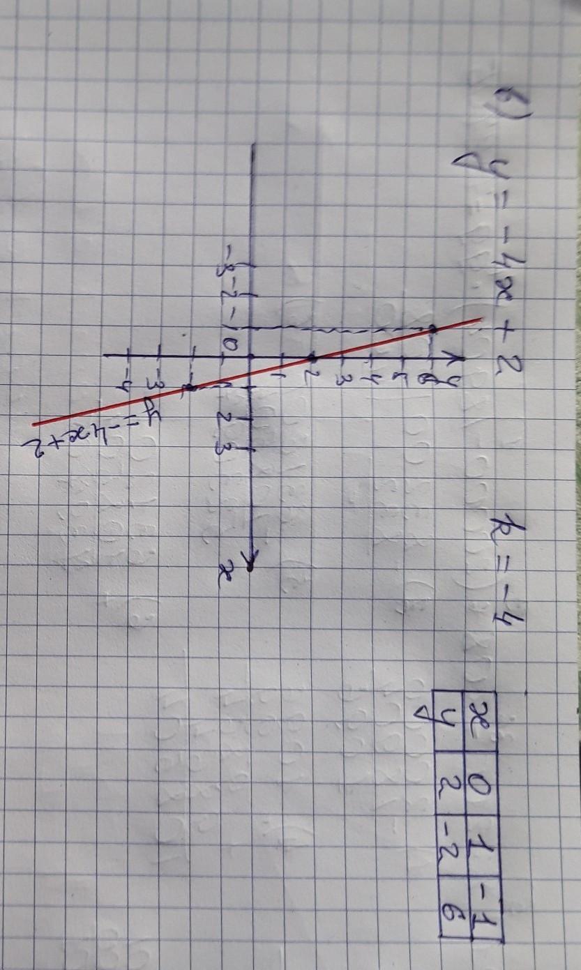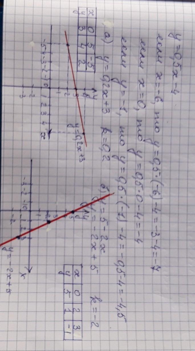 1. Линейная функция задана формулой y=0,5x-4. Найдите значение y, соответствующее x=-6; 0; 10, при каком значение x значение y равно 6; 0; -1? 2. Постройте график функции, заданной формулой: а) у=0,2x+3 б) y=5-2x в) y=-4x+2 Для каждой функции укажите значения коэффициентов k и b.