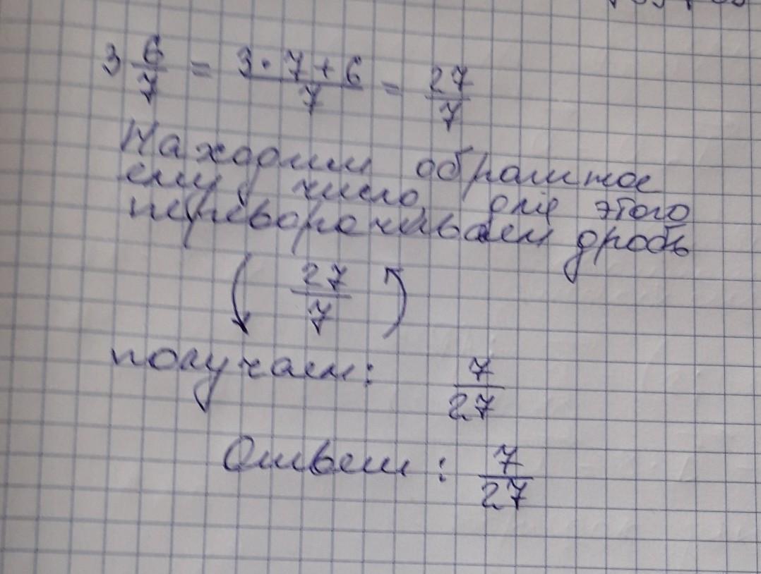 Запиши число, обратное смешанному числу три целых 6\7 (3 6\7)